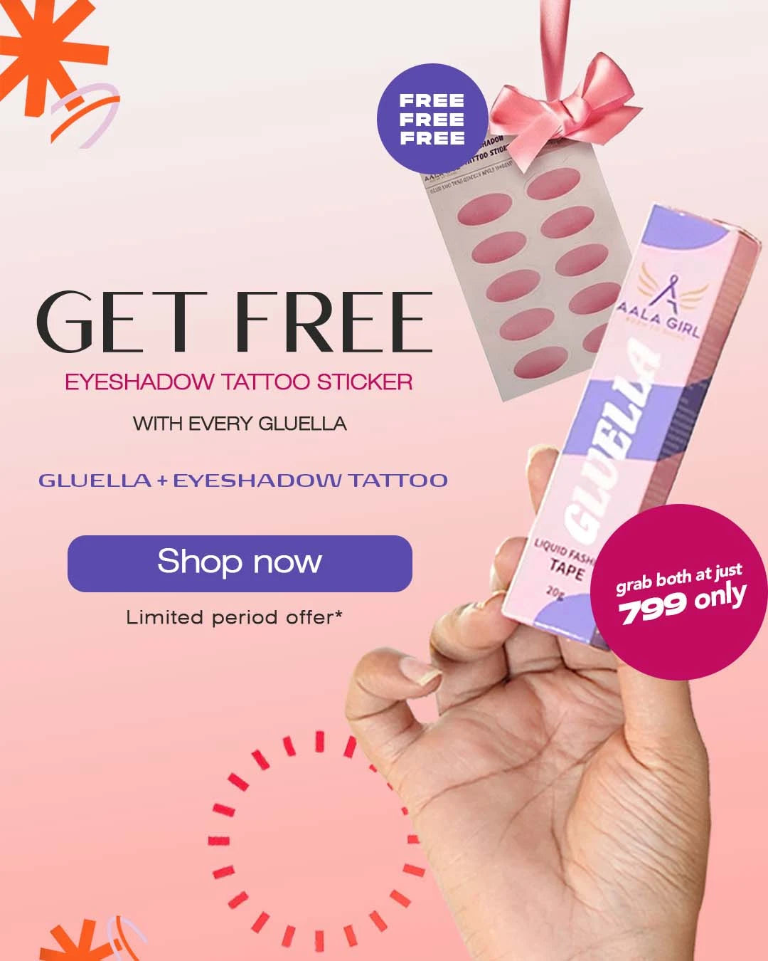 🎁 Limited Launch Offer: Free Eyeshadow Sticker Worth ₹699 with Every Gluella ,Only for First Few Orders!