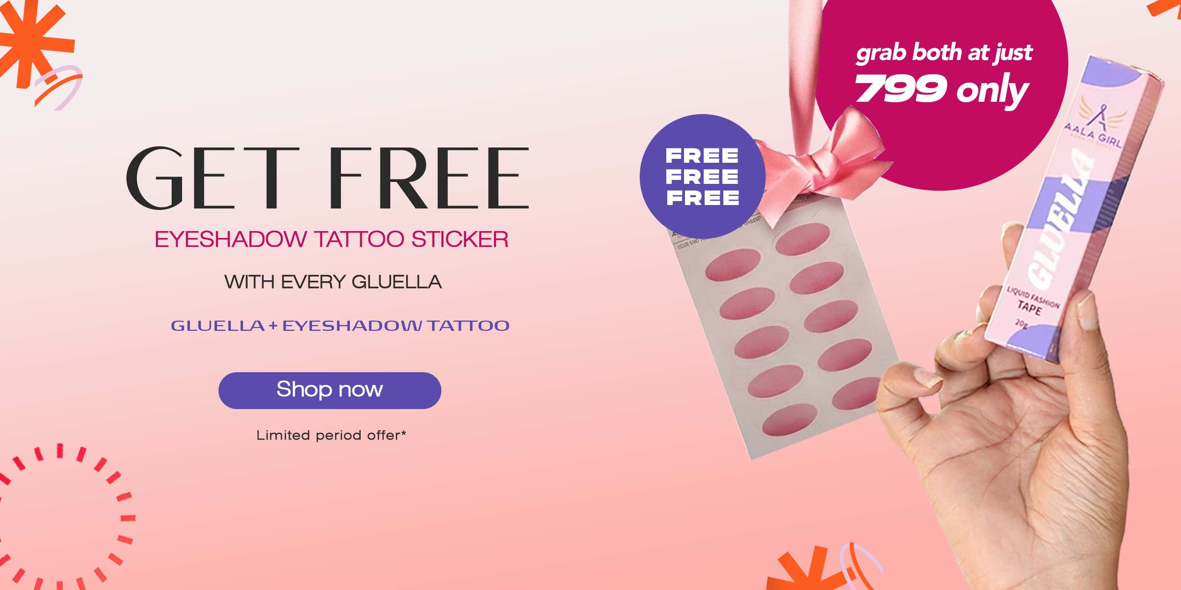 🎁 Limited Launch Offer: Free Eyeshadow Sticker Worth ₹699 with Every Gluella ,Only for First Few Orders!